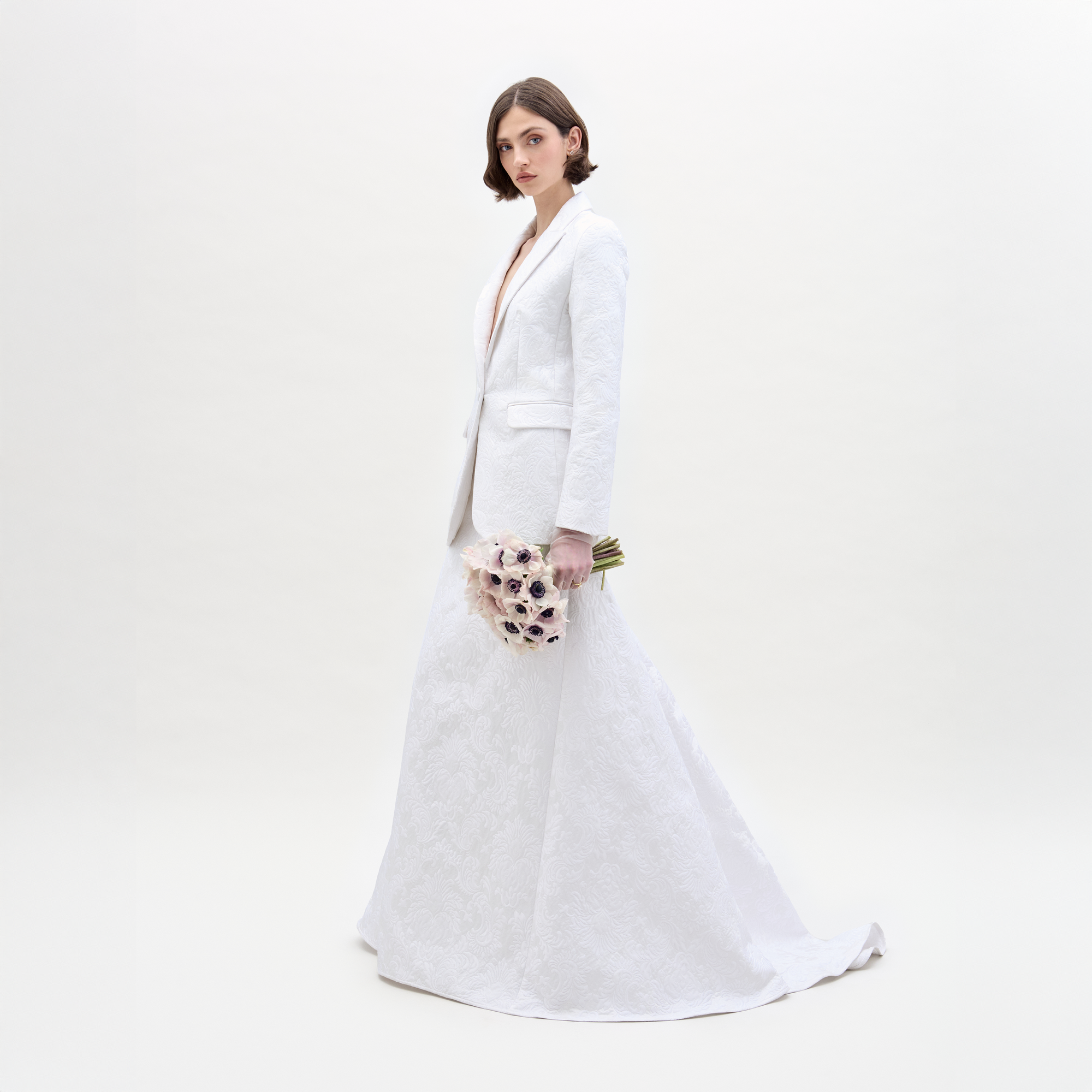 - Floor-length skirt with train